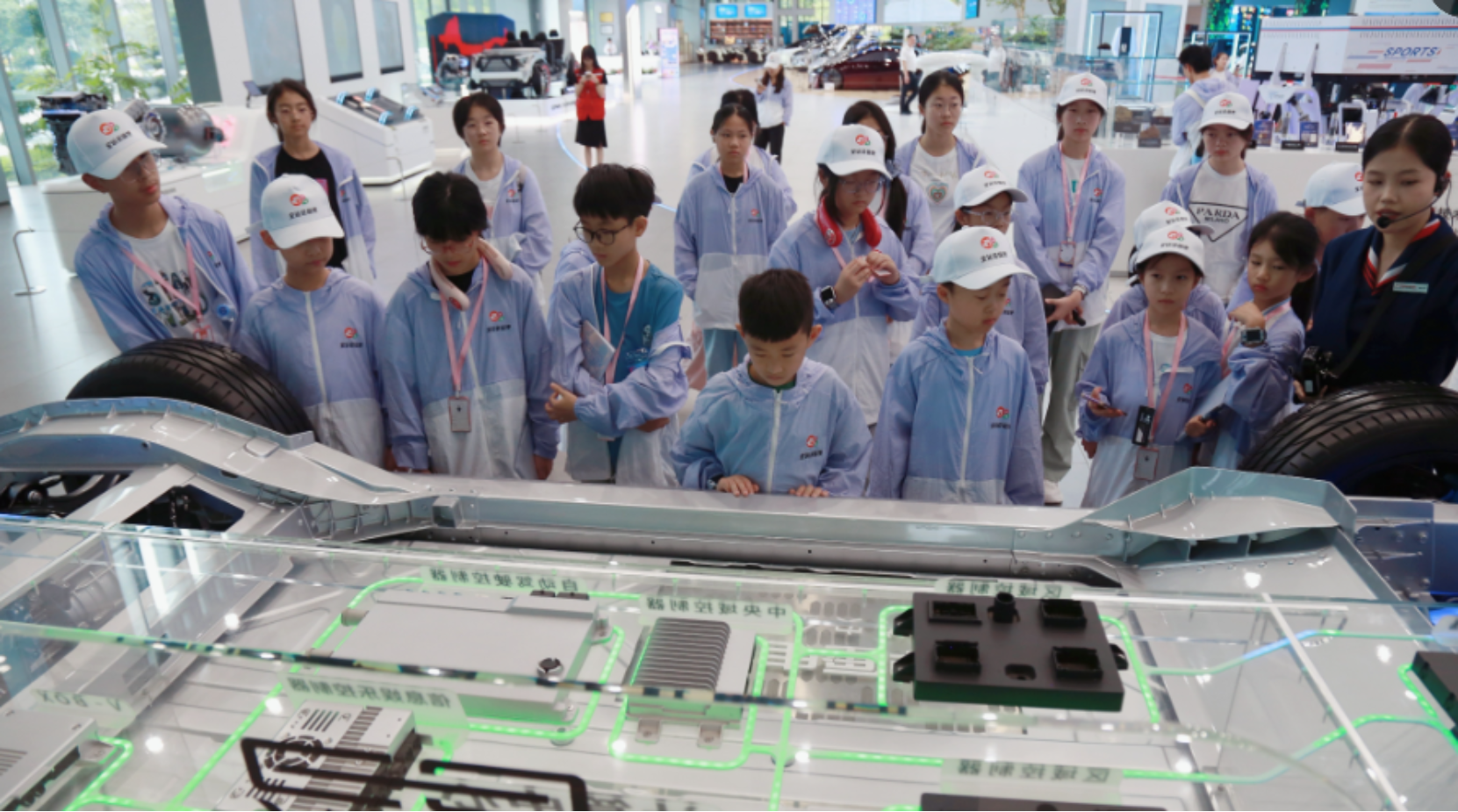 一进广汽科技馆,我们的眼睛就“唰”地一下亮了!各种各样的汽车整齐排列,有的线条流畅,有的造型威武,有的科技感十足,有的萌萌的。信使们了解到:广汽集团不仅是一个实力雄厚的汽车企业,他们的团队还拥有着一种特别棒的体育精神——团结协作、追求卓越、永不言弃!更让我佩服的是,他们和全运会一样,有着强烈的环保理念,在工作人员的介绍下,我们了解到了展台上许多亮眼的新能源汽车,它们使用电力驱动,大大减少了尾气排放,为保护我们共同的家园——地球,贡献着一份“绿色”力量。