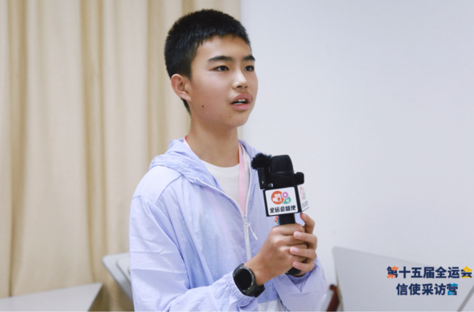 而当听到“作为广州人,本届全运会在家乡举办,有什么感受”这个问题时,江剑芬老师表示:他非常自豪,因为这表现出家乡人民对体育的热爱,对此他很自豪。反复的“自豪”二字,看得出江剑芬老师难以掩饰的喜悦之情,从而反映出他对家乡的浓浓深情以及对体育的热爱。