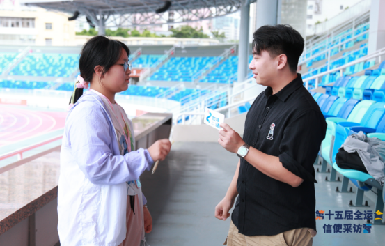 平日里来广东省人民体育场进行运动锻炼的普通市民很多。大家都对此次全运会非常期待,一位市民对第15届全运会在自己家乡召开表示非常喜悦和自豪,他热情地介绍了广州当地的美食,早茶不可错过,除此之外,他家乡的陈皮也非常出名,他热情地邀请全国各地的朋友,如果来广州看全运会的话,可以品尝当地的很多美食,希望大家多多了解大湾区,喜欢上大湾区。另一位在现场运动的排球运动员也在采访中表示:他来自华南师范大学,大学校园里的运动氛围非常好,他平时非常热爱运动,希望能代表学校参与一些全运会志愿者工作。这些都展现出大湾区人民热情爽朗的性格以及强烈的集体荣誉感。