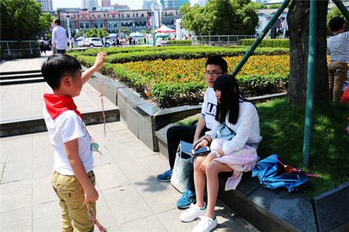 为了迎接立夏节的到来,许多有爱的妈妈们早在一个多月前就开始做准备工作,并发动奶奶、外婆们一起亲手编制立夏蛋套约1800个和驱蚊香囊250多个。4月30日,第三届爱心义卖活动又一次在天一广场拉开了帷幕。55位同学每3-4人一组,他们有的拿爱心箱,有的拿蛋套和香囊,有的拿着历届的爱心介绍牌,开始他们的爱心之旅。经过了前二届锻炼过的同学显然更有经验,他们井然有序的开始向陌生人讲述活动的过程并成功义卖。在55位同学的共同努力下,短短两个多小时,共获得爱心款5288元。