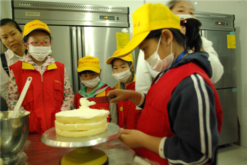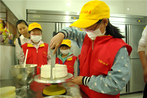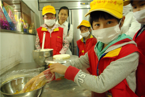 小记者们亲手制作蛋糕。
