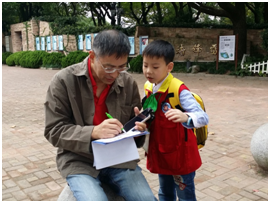 有了第一次经验,后面更加驾轻就熟,期间还碰到眼睛不好的老爷爷,我耐心地念题目给他听,也顺利完成了。我和小伙伴相互配合,你采访我拍照,我采访你拍照,不一会儿就顺利完成了10份调查问卷!
